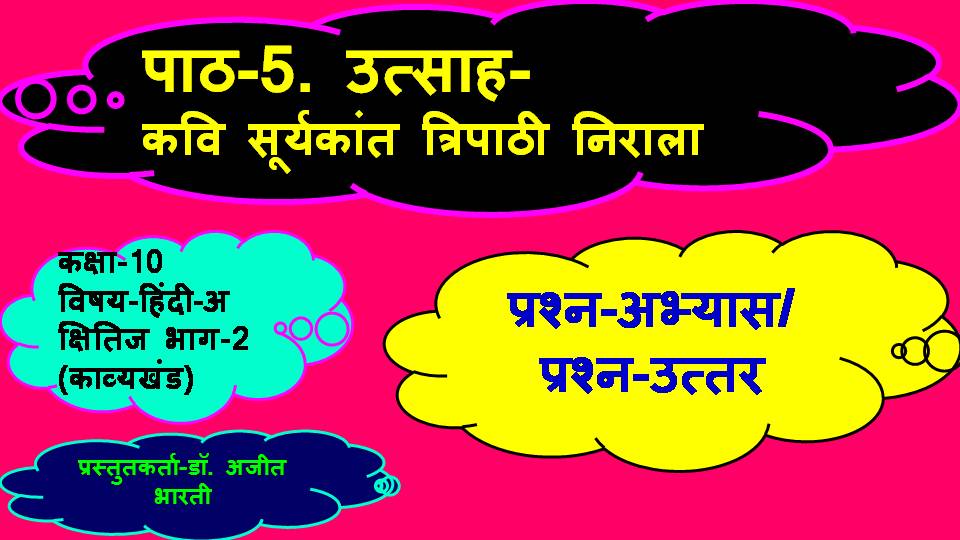 utsah class 10-सूर्यकांत त्रिपाठी निराला-प्रश्न-उत्तर | उत्साह क्या हैं ? यहाँ पर इस पाठ के सरल भाषा में उत्तर प्रस्तुत किये गए है जो छात्रों के लिए बहुत उपयोगी होंगे | इसमें कवि ने बादलों के माध्यम से लोगों को आव्हान किया है |