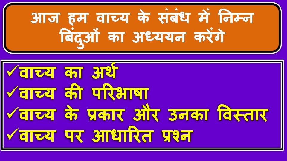 वाच्य -का -अर्थ /वाच्य किसे कहते हैं/ वाच्य के प्रकार /Vachya